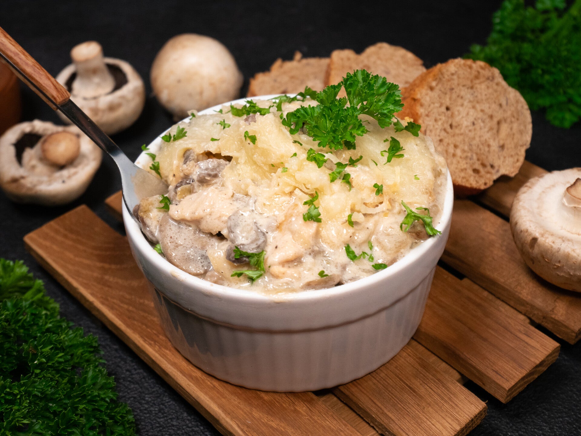 Sipuli (26 %), broilerin filee (22 %), herkkusienet (22 %), kuohukerma 30 % (22 %), auringonkukkaöljy, cheddar-juusto, juomavesi, sienimauste, tärkkelys, ruokasuola, mustapippuri jauhettu.